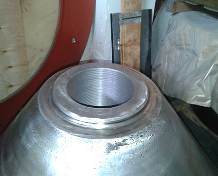 2014-06-10我司按標(biāo)準(zhǔn)維修工藝,對動錐體鑲套,重新加工螺紋;對動錐體外錐面補(bǔ)焊加工。維修后重新安裝球體。